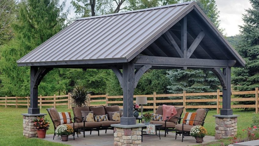 For those that have large yards, a pavilion may be a better structure to have. Pavilions are more grand than pergolas and typically have solid roofs which can provide several other benefits like grills, tv, play tables, and other objects that should be kept from being rained on. They're good places for yoga sessions!